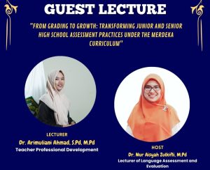 Guest Lecture ini menghadirkan narasumber utama Dr. Arimuliani Ahmad, S.Pd., M.Pd., pakar dalam bidang Teacher Professional Development, dengan Dr. Nur Aisyah Zulkifli, M.Pd. sebagai host sekaligus dosen Language Assessment and Evaluation di Program Studi Pendidikan Bahasa Inggris.