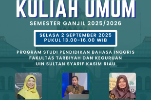 Program Studi Pendidikan Bahasa Inggris Fakultas Tarbiyah dan Keguruan UIN Sultan Syarif Kasim Riau kembali menyelenggarakan kegiatan Kuliah Umum bertema “Language Education, Proficiency, and the Machine” pada Selasa, 2 September 2025. Kegiatan ini dilaksanakan secara daring (online) dan menghadirkan narasumber tunggal, Muhammad Fauzan Ansyari, S.Pd.I., M.Sc., Ph.D., seorang dosen Pendidikan …